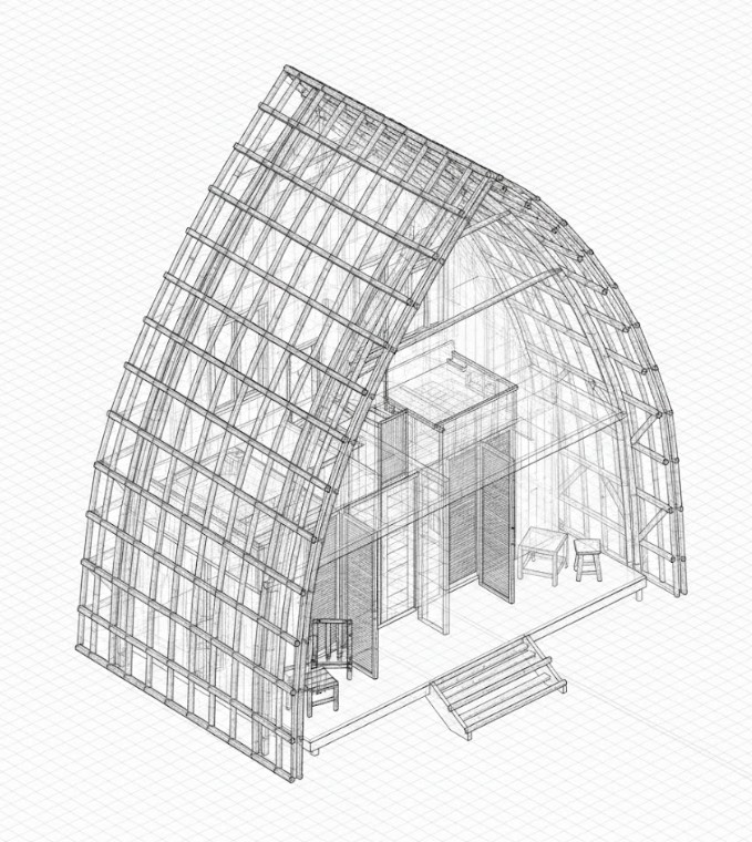 Visualisasi 3D membantu memastikan bahwa setiap detail sesuai dengan harapan sebelum satu batang bambu pun dipasang.